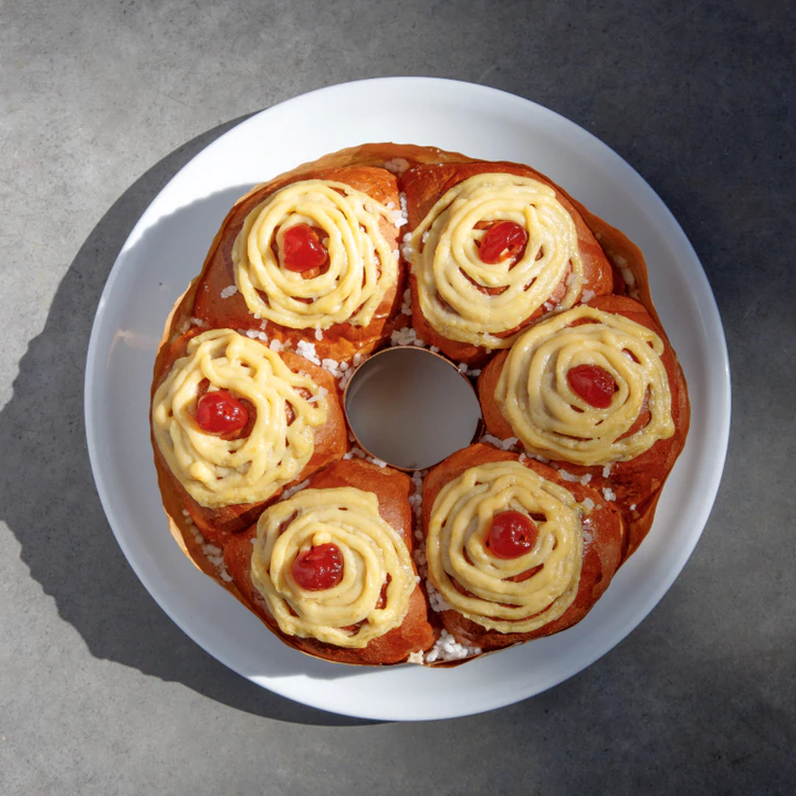 La pastelería boutique de Juliana Herrera Dappe es “Mada Patisserie”, que presenta dos opciones de rosca de Pascua. La primera alternativa presenta una masa rellena de una suave crema pastelera, que se completa con más crema pastelera junto a almendras fileteadas; cuesta $2500. La segunda alternativa de Mada Patisserie ofrece una rosca trenzada de chocolate y almendras, que cuesta $2900. Las dos opciones se venden en tamaño único.